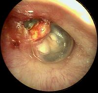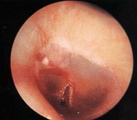 在耳鼻喉科门诊中,经常见到各种不同类型的鼓膜穿孔病人。有的是因感冒致急性中耳炎穿孔,或挖耳不慎挖穿;有些婴幼儿因哺乳不当,呕奶后致耳流脓;甚至打球时被球或手撞耳,吵架被人刮巴掌,鞭炮震耳也可引起鼓膜穿孔;偶尔还可见昆虫入耳引起鼓膜穿孔…… 鼓膜穿孔使中耳与外界相通,在游泳、洗头或挖耳时细菌容易进入引发中耳炎。反复中耳炎会使鼓膜穿孔增大、中耳粘连硬化,使听力进一步下降。如不适当用药,还可引起内耳神经功能下降,更难医治。更为严重的是,中耳反复发炎可导致骨疡型或胆脂瘤型中耳炎,骨头受侵蚀时有可能导致面神经瘫、脑膜炎、脑脓肿等颅内外并发症,甚至有生命危险。