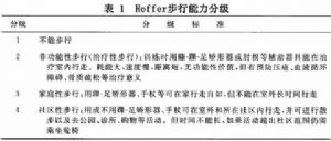 通过对步行能力进行宏观分级,大致了解患者能否步行,能否在家庭环境中或是社区环境中步行(表1)。