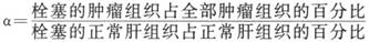 1.超选择性肝段、亚肝段栓塞术的重要的原则是栓塞部分包含最多的肿瘤组织和最少的正常肝组织,这两者比值用α来表示,即: