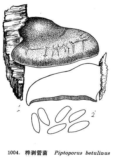 图 1004 桦剥管菌 : 1. 子实体, 2. 孢子