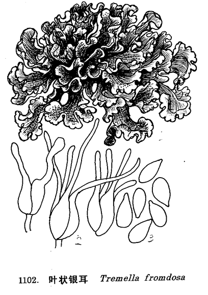 图 1102 叶状银耳 : 1. 子实体, 2. 担子, 3. 孢子