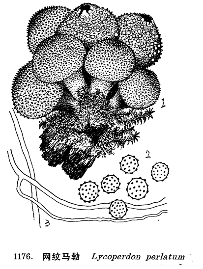 子实体一般小。倒卵形至陀螺形,高3-8cm,宽2-6cm,初期近白色,后变灰黄色至黄色,不孕基部发达或伸长如柄。外包被由无数小疣组成,间有较大易脱的剌,刺脱落后显出淡色而光滑的斑点。孢体青黄色,后变为褐色,有时稍带紫色。孢子球形,淡黄色,具微细小疣,3.5-5μm。孢丝长少分枝,淡黄色至浅黄色,粗3.5-5.5μm,梢部约2μm。图例
