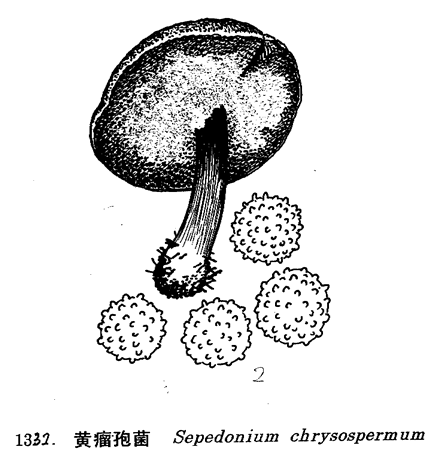 图 1332 黄瘤孢菌 : 1. 寄生于牛肝菌菌管的状态, 2. 孢子