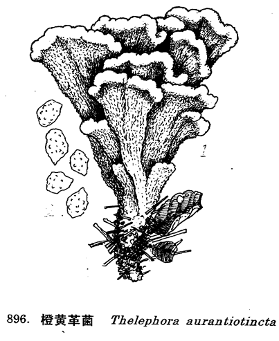 图 894 橙黄革菌 : 1. 子实体, 2. 孢子