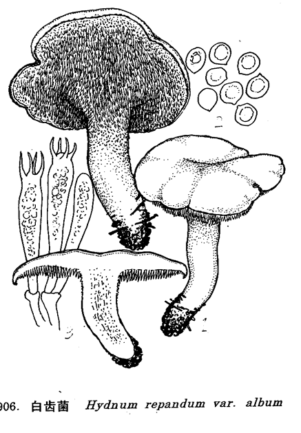 图 906 白齿菌 : 1. 子实体, 2. 孢子, 3. 担子