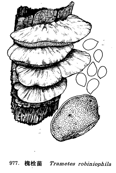 图 977 槐栓菌 : 1. 子实体, 2. 孢子