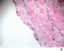 (4)神经:有周围神经病者,于光镜下可见淀粉样物质弥漫性沉着于病变神经鞘,有时神经纤维鞘也有块状沉着,并伴有神经鞘颗粒样变性。后期可见神经纤维消失。
