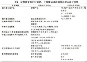 淀粉蛋白形成机制的研究进展,为更有效治疗系统性淀粉样提了更多的理论基础和治疗策略(表4)。治疗的主要目标是抑制致淀粉样变前体蛋白的产生,增加其清除。已经证明这一方法,在这几种类型的淀粉样变(AL、AA和ATTR)是行之有效的。淀粉样变的治疗主要包括特异性治疗(化疗)和支持治疗两方面。