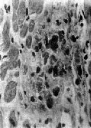 有时在儿童,渗出性病变特别明显,心肌间质发生明显水肿及弥漫性炎性细胞浸润。严重者常引起心功能不全。