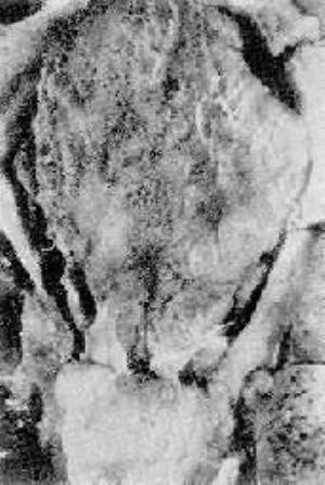 病变后期,心内膜下病灶发生纤维化,疣赘物亦发生机化。由于风湿病常反复发作,瘢痕形成越来越多。心壁内膜可增厚、粗糙和皱缩,尤以左心房后壁更为显著,称为McCallum斑(McCallum’s patch)。