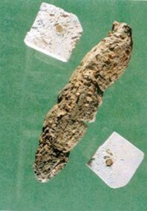 性状 完整的茯苓呈类球形、扁长圆形或不规则团块。外皮薄而粗糙,黑褐色,有明显皱纹及缢缩。体重,质坚实,破碎面颗粒性,近边缘淡红色,有细小蜂窝样孔洞;内部白色,少数淡红色,有的中间抱有松根(茯神)。无臭、味淡、嚼之粘牙。