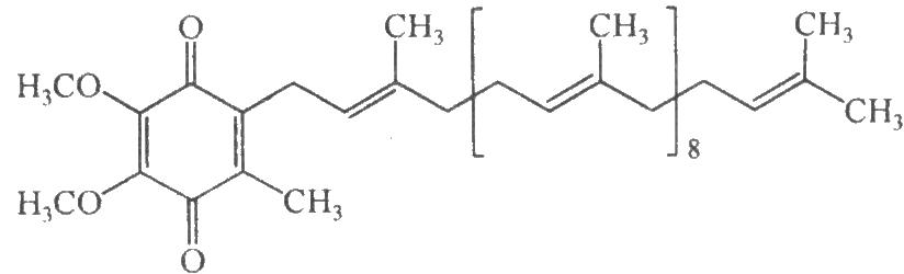 本品为2-[(全-E)3,7,11,15,19,23,27,31,35,39-十甲基-2,6,10,14,18,22,26,30,34,38-四十癸烯基]-5,6-二甲氧基-3-甲基-p-苯醌。按无水物计算,含C59H90O4不得少于98.0%。