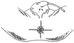 ㈢切开直肠:在直肠盲端作十字形切口切开,用吸引器吸尽胎粪,或让其自然流出拭净。注意保护创面,尽量避免污染。如发生污染,应仔细用生理盐水冲洗。