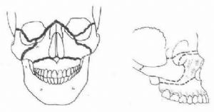 上颌骨如发生横断骨折,骨折段常因重力而发生下垂移位。如撞击方向是由前向后,骨折段可向后移位,使面中部凹陷;由下向上的撞击,常造成嵌顿骨折。