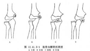 若骨折后无移位可非手术治疗,屈肘位石膏托固定6~8周。若骨折有明显移位者可行肱骨内髁骨折切开复位术手术治疗。