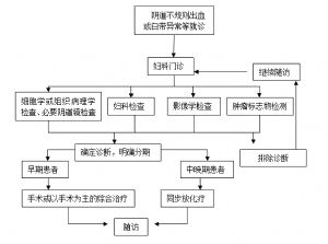 治疗后第1-2年,每3-6个月进行1次宫颈或阴道细胞学检查;第3-5年,每6个月1次,然后每年随诊1次。胸部X线片每年拍摄1次,连续5年后根据情况而定。有临床指征时做CT扫描。