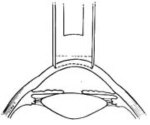 1.制作移植床 开睑器开睑,上下直肌固定缝线,可用任一种用于穿透性角膜移植的环钻划界,植床直径一般为7.5~8mm。在角膜中央区钻刻0.3~0.4mm深度(图1)。