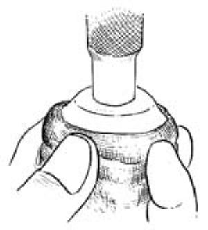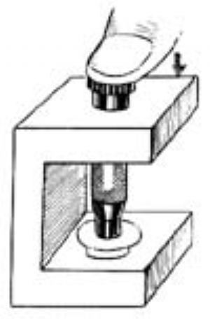 4.为了使屈光界面更光滑,亦可用经冷冻车床车好的等厚全板层角膜片,上皮面向下,放于切割钻上,用环钻刻切所需大小的板层移植片(图4)。