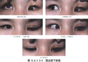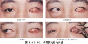 由于先天或后天因素使眼球固定在某一位置上,不能向任何方向转动,称为固定性斜视。按眼位偏斜的方向可分为内、外、上、下固定性斜视。本病只能用手术的方法去解除挛缩及纤维化的肌肉牵拉,并联合拮抗肌的加强,使眼球恢复正位。