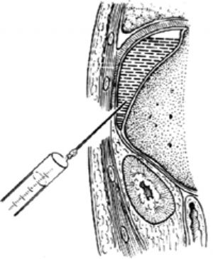 1.体位 左侧卧位,健侧在下,稍向前斜15°左右。用沙袋垫起腰部,在第1腰椎棘突处作一标志。