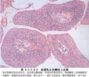 弥漫性者,全部球结膜均受累,此型恶性程度高,易发生淋巴结转移,预后差。裂隙灯显微镜下可见到血管形成是此肿瘤的一个主要特征。肿瘤的每一原始小叶均有一支毛细血管构成的血管轴,它爬行至小叶尖端即弯曲向下消失于互相吻合的毛细血管网中,有的小叶中毛细血管散开形成一个或多个小血管球。肿瘤附近也有明显的血管形成。肿瘤范围广又有淋巴结(耳前或下颌)转移者,可行放射治疗。