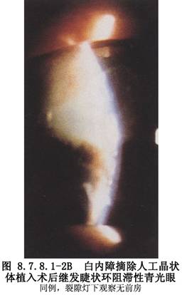 1.恶性青光眼患者(图8.7.8.1-1A、B,8.7.8.1-2A、B)。