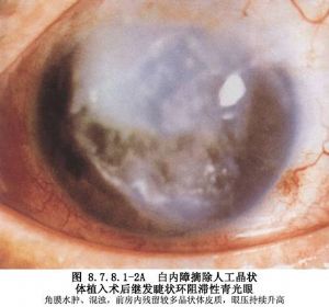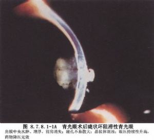 恶性青光眼是青光眼手术后的一种严重并发症,表现为术后前房浅或前房消失伴眼压升高,用常规的青光眼治疗方法无效或反而恶化。过去认为恶性青光眼的发生是由于手术后睫状体的水肿前移,与晶状体赤道部紧贴产生睫状环阻滞,致使房水向后倒流并积聚在玻璃体内。近年来临床上发现恶性青光眼也可发生在未做手术的患者、白内障摘除手术后的患者,或由眼外伤、眼部炎症引起,或在使用缩瞳剂后发生。恶性青光眼的主要临床特点是:前房的中央和周边部一致性变浅,产生浅Ⅱ~Ⅲ度的浅前房,早期眼压稍高,15~20mmHg,后逐渐升高。使用睫状肌麻痹剂可缓解部分临床症状,使用缩瞳剂可加重病情。超声生物显微镜检查发现少数恶性青光眼的患者确实存在睫状体水肿、前移即睫状环阻滞,而大部分病人则表现为虹膜晶状体隔或玻璃体-睫状体-虹膜隔的极度前移,后房完全消失。