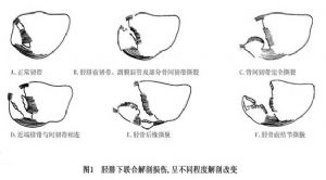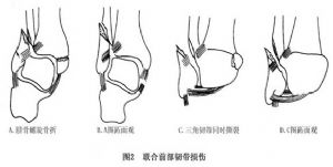 胫腓下联合前部分离常伴随腓骨远端骨折、胫腓联合骨折和胫骨前结节撕脱骨折同时发生,损伤后导致踝关节不稳定。