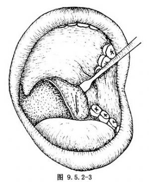 (2)茎突定位:扁桃体窝创面彻底止血后,用手指于窝内触摸确定茎突末端的位置。