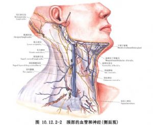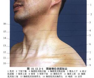颈项皮瓣基部平面较低,约在颈中部上方,可用于修复口腔、面颈部,尤其是咽部。为扩大皮瓣应用范围,向下延伸皮瓣的长度和加宽皮瓣的基部,必要时需行皮瓣延迟手术。颈部的表面标志及解剖(图10.12.2-1,10.12.2-2)。