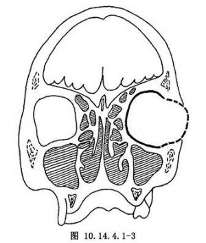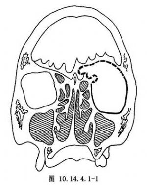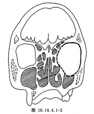 2.耳鼻喉科医生通过上颌窦切除眶底和筛窦,使眼眶向上颌窦和筛窦扩大(图10.14.4.1-2)。