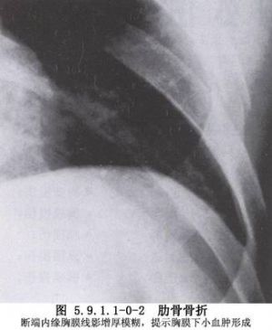 肋骨骨折无论是平时或战时均较常见,战时肋骨骨折约占胸部伤的40%~60%,平时约为闭合性胸部创伤的85%。闭合性肋骨骨折可可由直接暴力或间接暴力造成。直接暴力引起的肋骨骨折,骨折断端向内移位,易损伤肋间血管、胸膜或肺等而产生肋骨断端局部血肿、血胸、气胸或血气胸;间接暴力如挤压或坠落伤,胸部前后方向受暴力挤压,压力传递到肋骨中部使其发生骨折,骨折断端向外。枪弹伤或爆炸伤所致的骨折,多为粉碎性骨折。