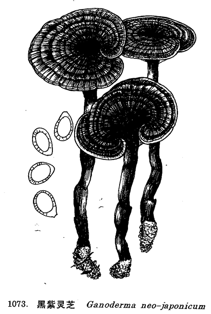 子實體中等至較大。一年生。菌蓋直徑6-12cm,半園形、腎臟形至近圓形,扁平,赤褐色或紫紅褐色。或近暗茶褐色至黑褐色,表面光滑,具明顯的同心環棱紋及放射狀凹凸不平的條紋,邊緣薄或鈍,內卷,新鮮時近白色。管孔面白色帶黃色。菌柄側生,或有偏生或中生,黑褐色,近圓柱形,光亮,長0-20cm,粗0.6-1cm。孢子卵圓形,壁雙層,10-12.5μm×7.5-8.5μm。圖例