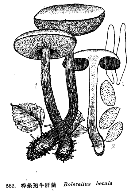 子實體小至中等大。菌蓋直徑3-9cm,扁半球形,膠粘,光滑,中央深棠梨色,周圍褐色至淡色。菌肉淡黃色,有時可傷處變淡紅色。菌管離生至凹生,黃綠至橄欖色,管口近圓形或多角形,管口較大,直徑1-1.5mm。菌柄近圓柱形,細長,下部稍彎曲,向上漸細,淡黃色,有明顯而粗的網紋,長10-14cm,可達27cm,粗0.5-1.5cm或2.3cm,內部實心。孢子印暗橄欖褐色。孢子長橢圓形至橢圓形,有小疣,淡橄欖褐色,16-22μm×7.5-102μm。側囊體棒狀或近梭形,30-50μm×6-12μm。圖例