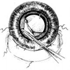 6.自一字形开口两端垂直剪开前囊膜(图6)。