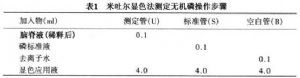 (1)钼酸铵溶液:在50ml去离子水中加浓硫酸3.3ml,再加钼酸铵0.2g,溶解后加吐温-80 0.5ml,最后加去离子水至100ml。