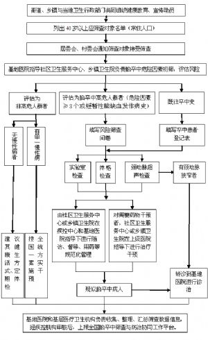 (一)当地卫生行政部门和技术执行机构协调街道办事处、乡镇政府,在项目开展前共同组织健康教育和宣传动员,从户籍登记中提取本辖区符合条件的常住居民基本信息,编制筛查对象名单,并通知到户。