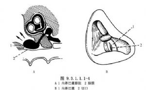 6.眩晕不减轻或复发 梅尼埃病晚期,毛细胞已退变,或前庭膜被推向前庭阶骨壁并失去弹性不能复原,虽行内淋巴囊减压术,眩晕不缓解。术后数月内淋巴囊切口瘢痕狭窄或闭锁,再次形成内淋巴积水而眩晕,可改行其他手术。