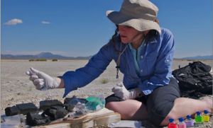 费利萨·西蒙在处理从莫诺湖中取出的泥块,充当用砷培育微生物的“温床”