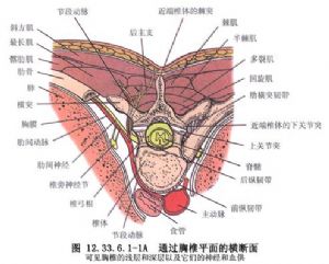 在胸椎,纵行切开壁胸膜后,将椎旁疏松组织向前后分离,注意向前不能达到椎体中线,主要在于向后显露相应的肋骨头;在腰椎,应进行腰大肌表面分离,自腰大肌的前缘向后侧牵开。然后进一步显露病变的椎体及其上下界的正常椎体,必要时在透视下定位。将病变椎体侧方的节段性血管分离、切断和结扎。