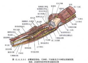 自肘关节的掌尺侧,沿前臂尺侧腕屈肌外侧缘,止于掌侧腕横纹。切开皮肤和皮下组织,注意保留皮下浅静脉及皮神经,纵行切开前臂筋膜,从尺侧腕屈肌的起点与止点之间游离尺神经,注意勿损伤其神经分支。
