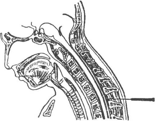 大椎为经穴名(Dàzhuī GV14)。出《黄帝内经素问·气府论》。属督脉。为手足三阳、督脉之会穴。大:巨大;椎:椎骨。穴在粗大的第七颈椎棘突之下,故名。位于脊柱区,后正中线上,当第七颈椎棘突下间凹陷处。俯首或俯伏取穴。层次解剖:皮肤→皮下组织→棘上韧带→棘间韧带。有解表通阳,补虚宁神作用。主要用于外感,虚劳及心神疾患等。如感冒、恶寒发热、头项强痛、疟疾、咳嗽、喘逆、胸背疼痛、支气管炎及哮喘、肺结核、骨蒸潮热、盗汗、五劳七伤、神经衰弱、癫狂病症、中暑、呕吐、霍乱、黄疸、风疹、腰脊强、角弓反张、血液病等。另有强身防病作用。配曲池、风池治流感;配风门、肺俞、膻中(麦粒灸)治哮喘;配少商放血、合谷可退热;配足三里、曲池、三阴交、脾俞治白细胞减少症。一般斜刺0.5 ~1寸;可灸。[参考资料] 高忻洙,胡玲主编.中国针灸学词典[M].南京:江苏科学技术出版社,2010:44.