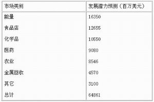 从理论上讲,几乎所有有机物都可以用生物工程的方法产生。据估计,到2000年,世界范围内生物工程产品的市场潜力将可达到65万亿美元,详见表9-1: