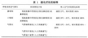 (2)高热、脱水:高热和脱水患者,常常导致呼吸急促,使气道水分丢失增加,加之全身组织脱水,使气道水分供应更显不足,因此对这些患者在补液的同时应进行湿化疗法。