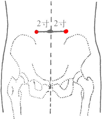 仰卧位,在脐中(任脉之神阙穴)旁开2寸处取穴。