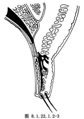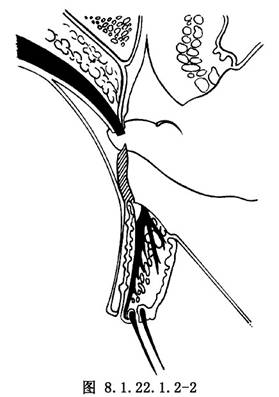 5.眼睑轮匝肌和皮肤一起用5-0丝线间断缝合(图8.1.22.1.2-2,8.1.22.1.2-3)。