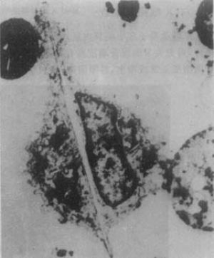 3.酶解及氢键作用 多形核白细胞吞噬尿酸钠晶体后,形成吞噬体。吞噬体与溶酶体相互作用或将氢离子结合到富含胆固醇与睾酮的细胞器膜上,致使细胞器穿孔,溶酶体膜破裂,释放酸性水解酶、溶酶体酶等,但并不能消化和酶解尿酸钠晶体,却使白细胞溶解、崩溃。微晶体,连同水解酶和白细胞破坏释出的胞浆酶等,均进入周围组织,引起炎症。此后,微晶体继续为其他多形核白细胞所吞噬,以致炎症进一步加剧。