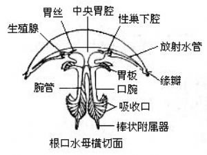 腕管是钵水母类中的根口水母类(例:蛸水母)通至口腕的管,相当于旗口水母口腕内面凹部腕沟的两侧缘连接封闭后的状态。根口水母类有8条口腕在其基部愈合,由于形成腕盘,所以口不宜接开口于外界,食物从口腕表面上散在的无数的小孔(吸收口)进入,经过腕管、口柱管达到胃内。这个细管的系统以胃为中心在口腕内形成如植物根样的分枝,因此把这一类水母称为根口水母类。