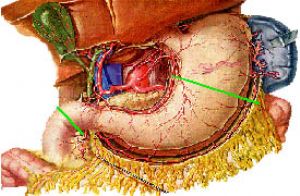 胃大部切除范围是胃的远侧2/3-3/4,包括胃体的远侧部分、胃窦部、幽门和十二指肠球部的近胃部分。切除要求一般来讲,高泌酸的十二指肠溃疡与II、III型胃溃疡切除范围应不少于胃的60%,低泌酸的I型胃溃疡则可略小((50%左右)。胃切除范围的解剖标志是从胃小弯胃左动脉第一降支的右侧到胃大弯胃网膜左动脉最下第一个垂直分支左侧的连线,按此连线大致可切除胃的60%。