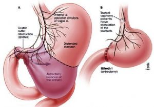 迷走神经切断术与胃大部切除术是治疗胃十二指肠溃疡最常用的两种手术方式。胃大部切除术包括胃切除及胃肠道重建两大部分。胃切除可分为全胃切除、近端胃切除和远端胃切除。后者即胃大部切除术,在我国是治疗胃十二指肠溃疡首选术式。